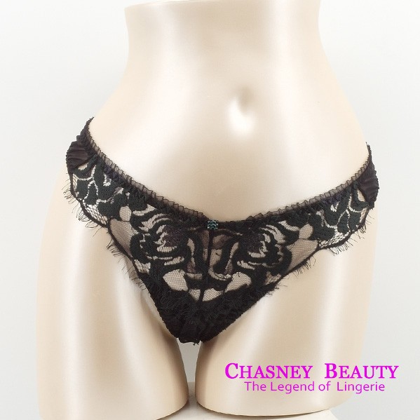 Chasney Beauty鬱金香蕾絲水晶丁褲S-M(黑)