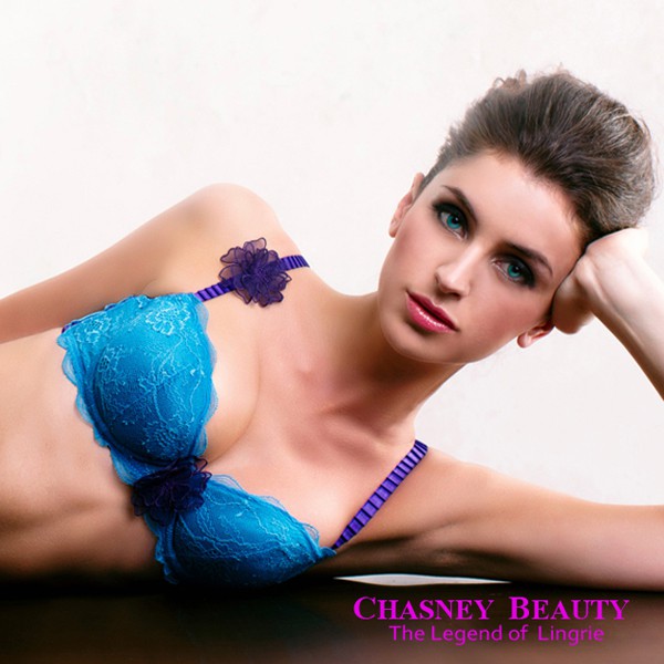 Chasney Beauty山茶花蕾絲內衣B-D(藍)