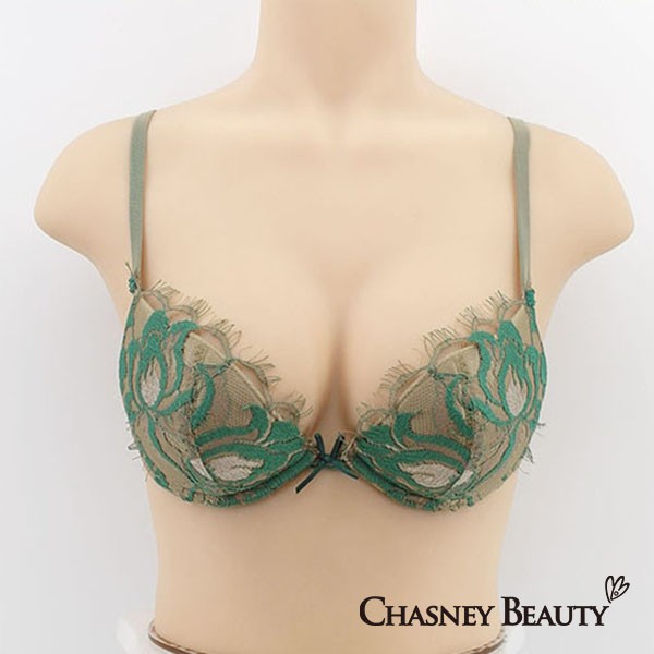 Chasney Beauty鬱金香蕾絲水晶三角褲S(綠棕)