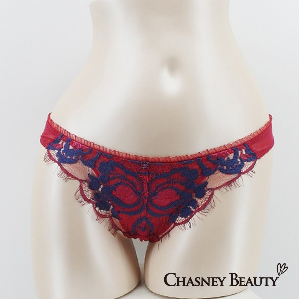 Chasney Beauty鬱金香蕾絲水晶丁褲S-M(紅藍)