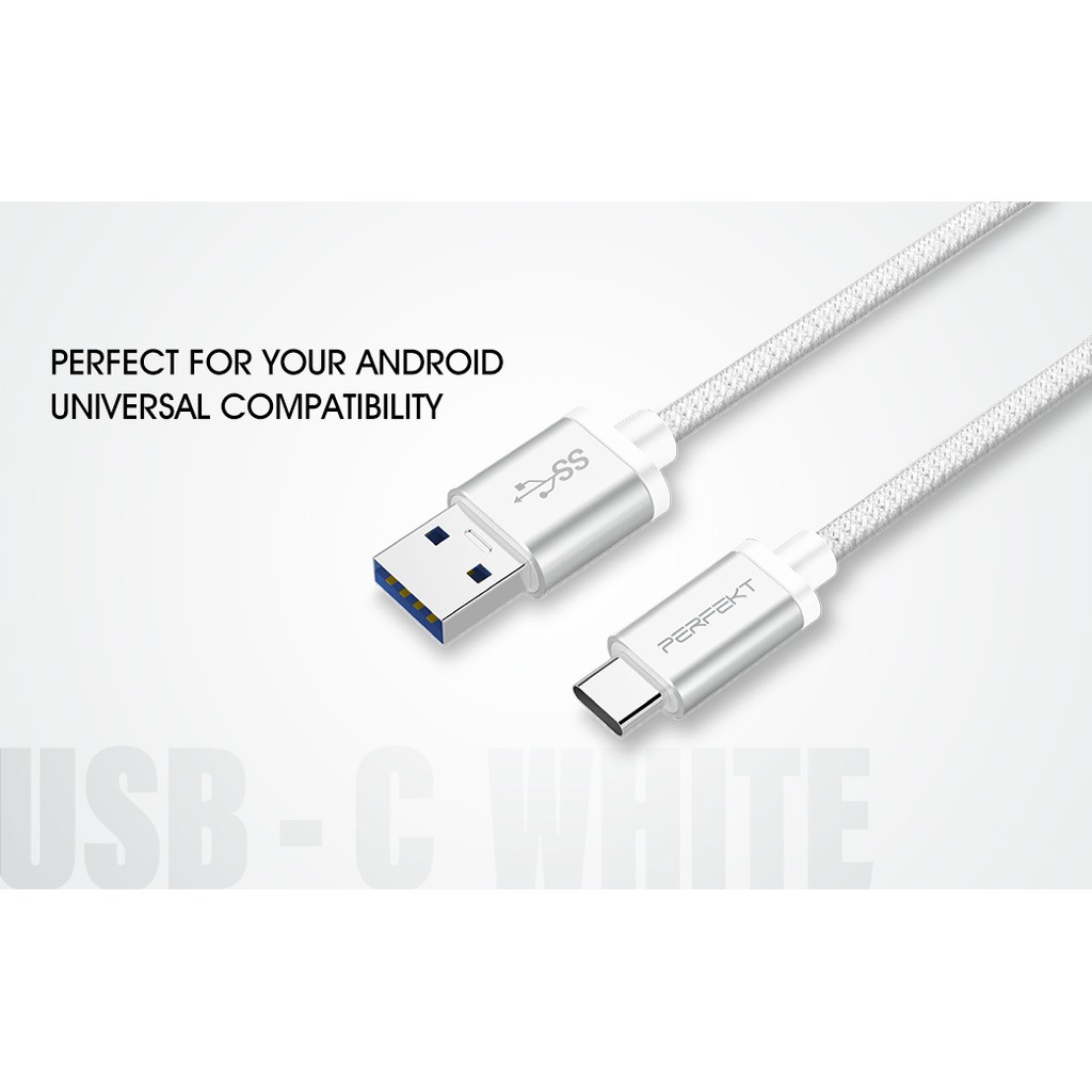 PERFEKT Type C to USB A 鋁合金編織快速充電傳輸線 -120cm (白金/銀色)