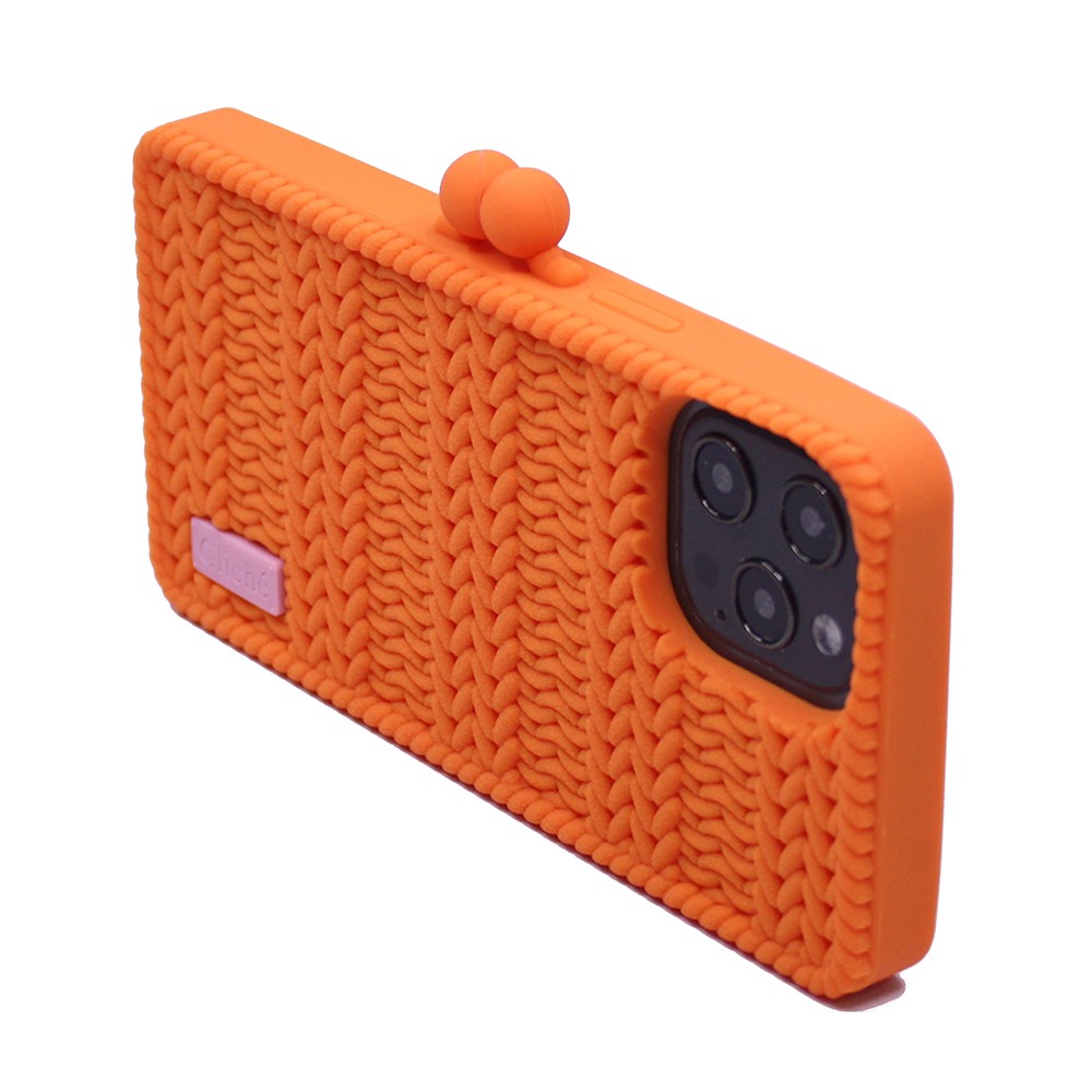 【Candies】Cliche針織 雙珠扣錢包手機殼(橘)-適用iPhone 12 Pro Max