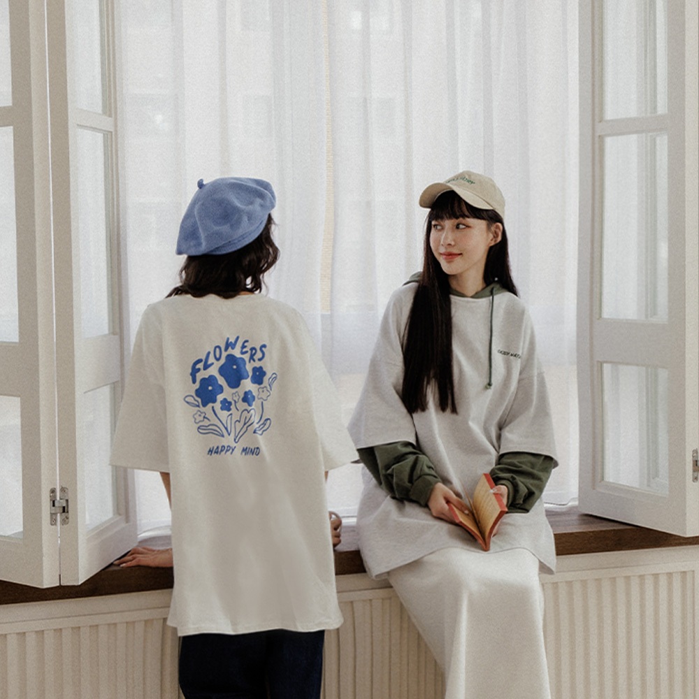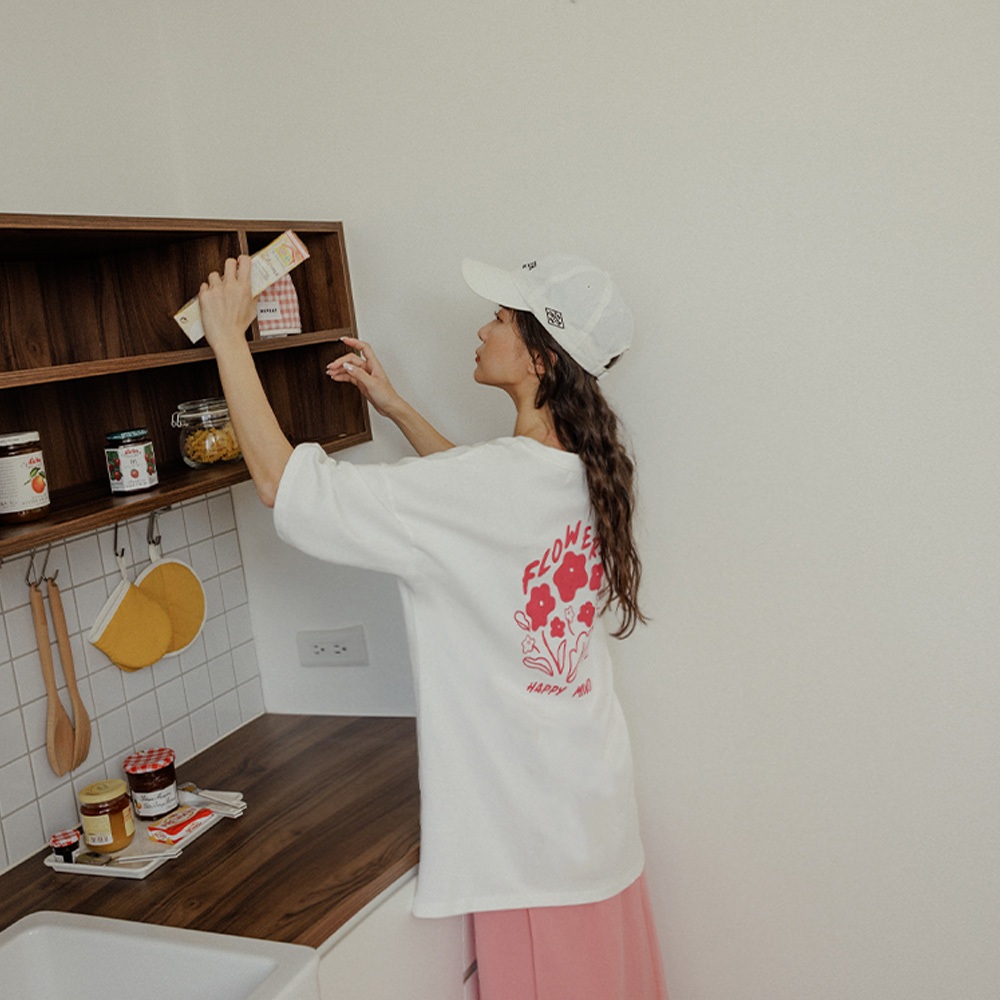 QUEENSHOP_ V 女裝 短袖精緻刺繡後花花造型印圖T 三色售 現+預【01039789】