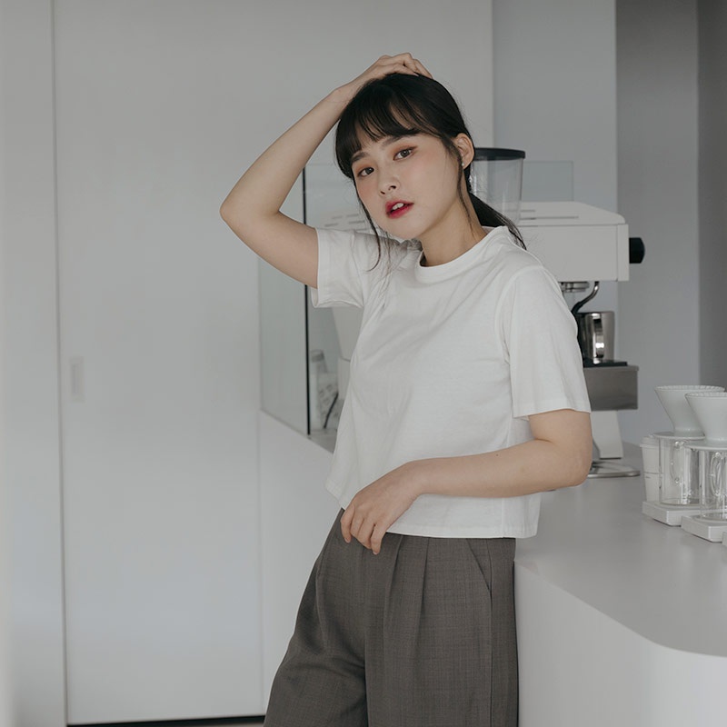 QUEENSHOP _V MIT圓領短版多色純棉上衣 三色售 現+預【01038781】 短版上衣 衣服女 t恤
