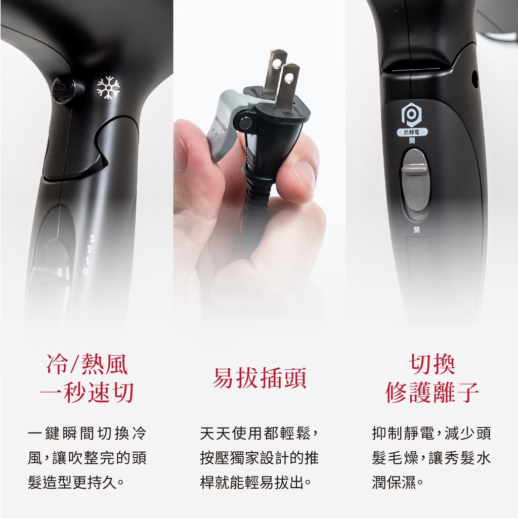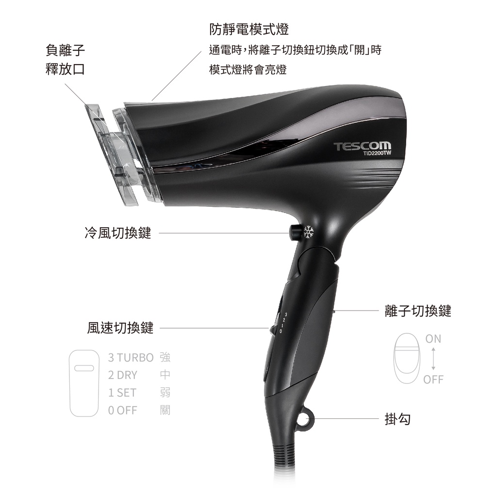 【TESCOM】TID2200TW 黑色 防靜電大風量吹風機 抑制靜電 負離子 速乾 保濕 2200 大風量 獨家色