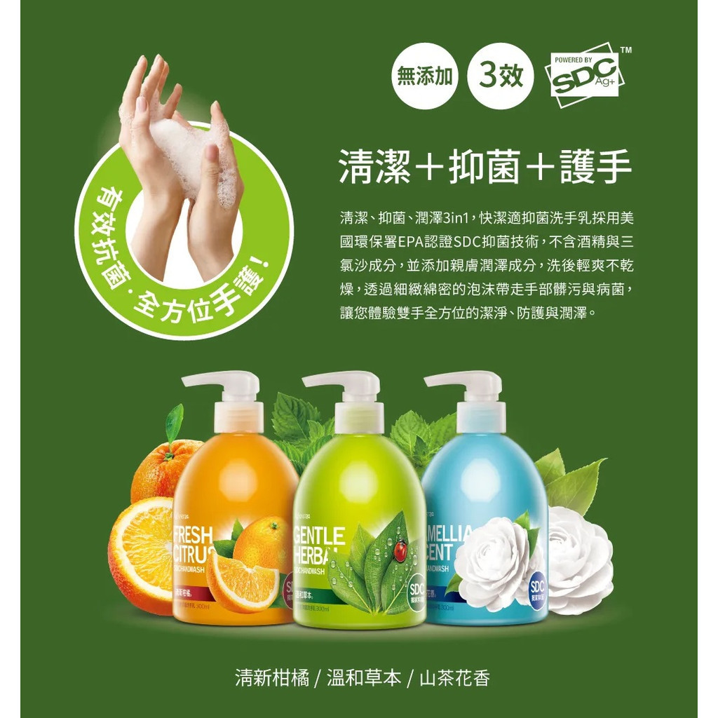 快潔適SDC抗菌洗手乳 300ml/瓶 柑橘 藍茶花 綠草本 清潔抗菌護手 SDC抑菌技術【立赫藥局】