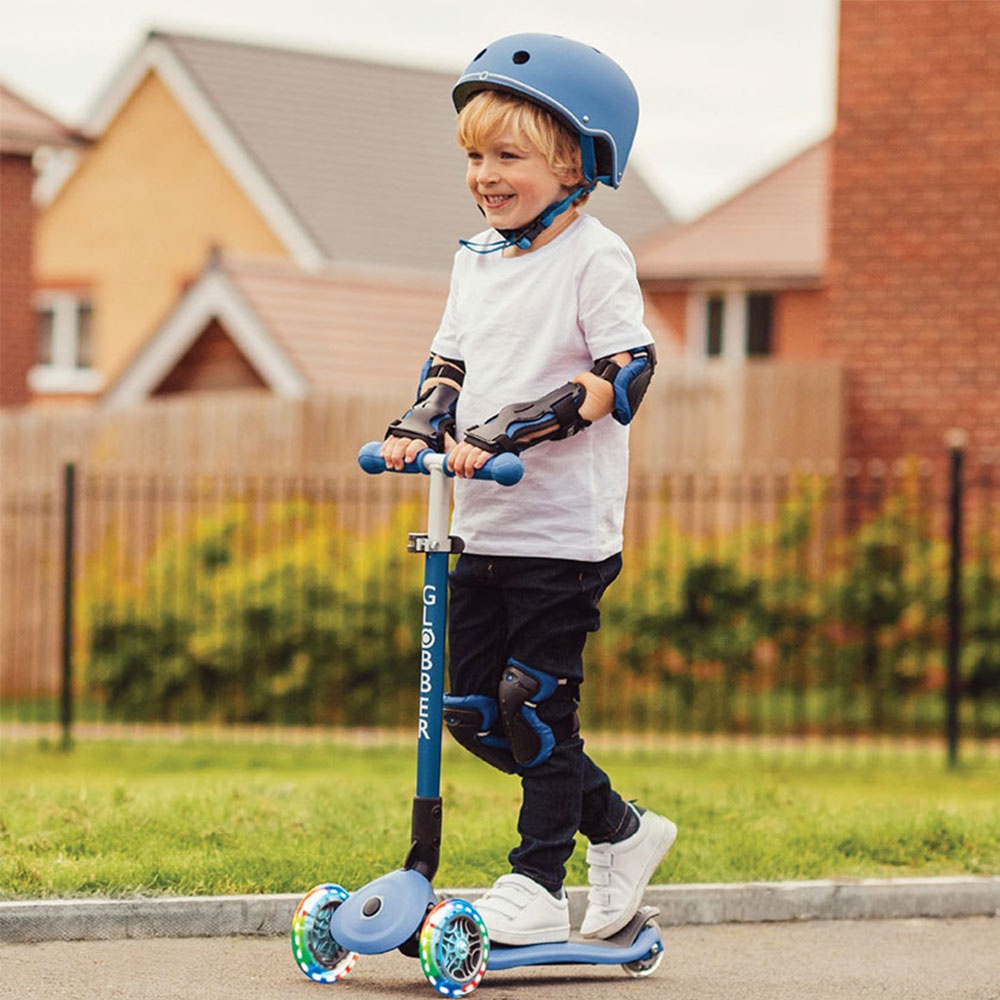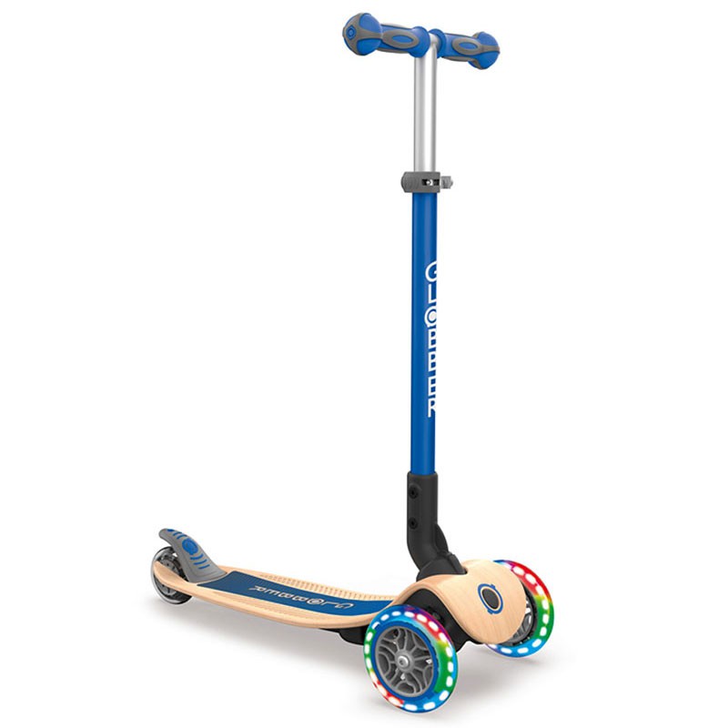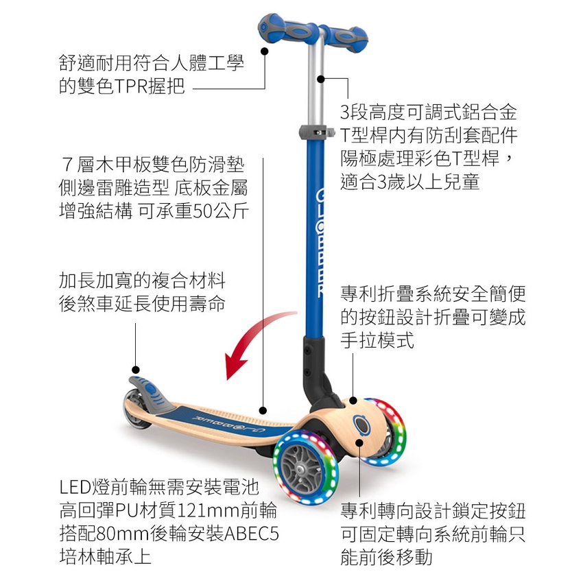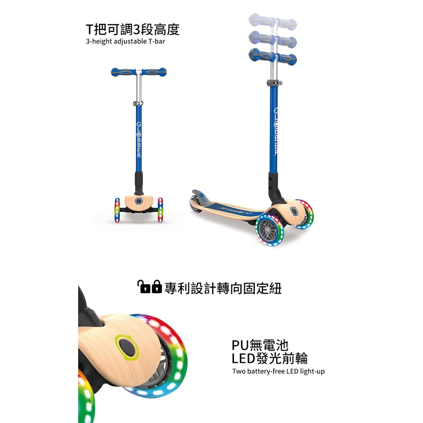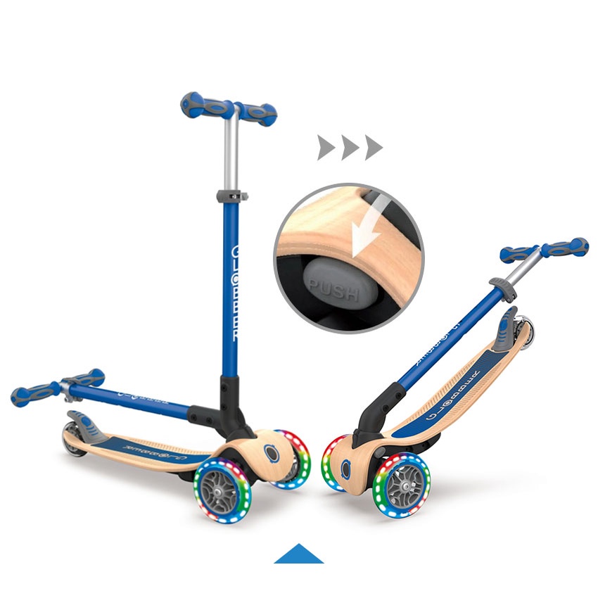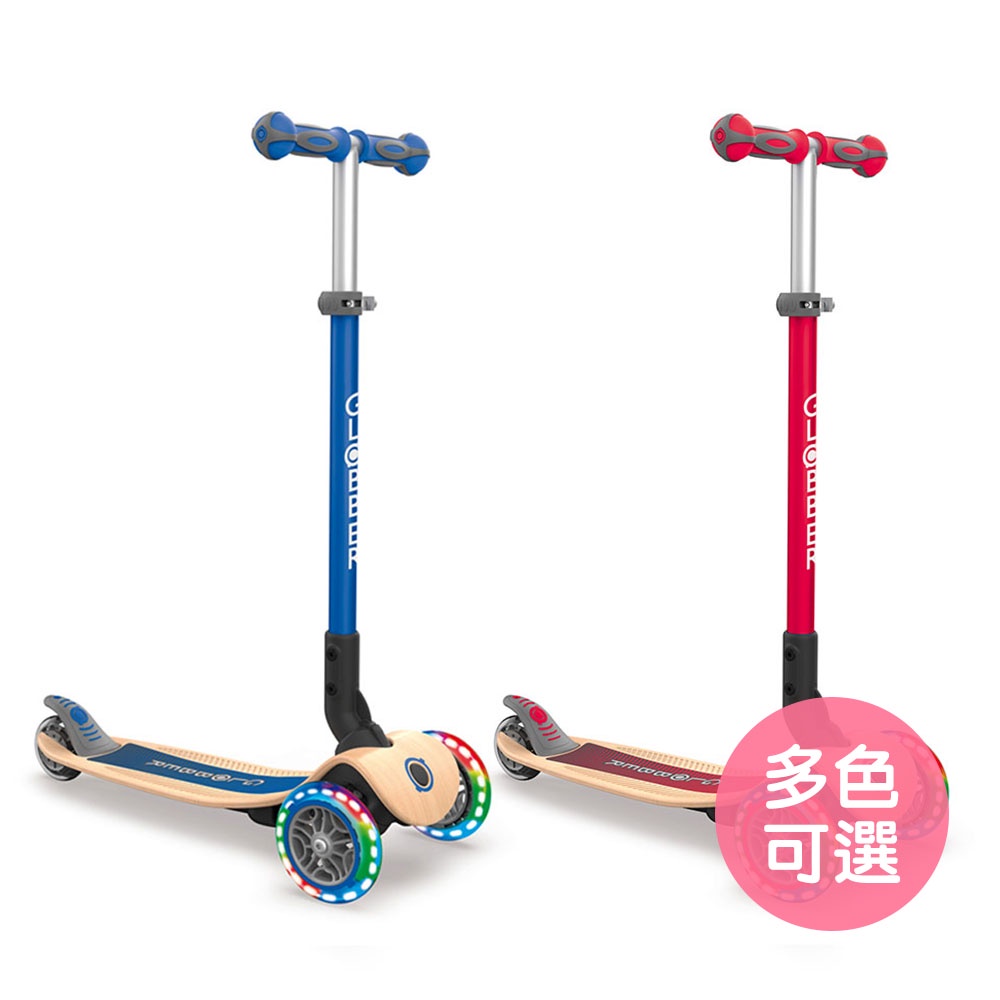 【法國GLOBBER】兒童2合1三輪折疊滑板車木製版(LED發光前輪) 滑板車 滑步車 平衡車