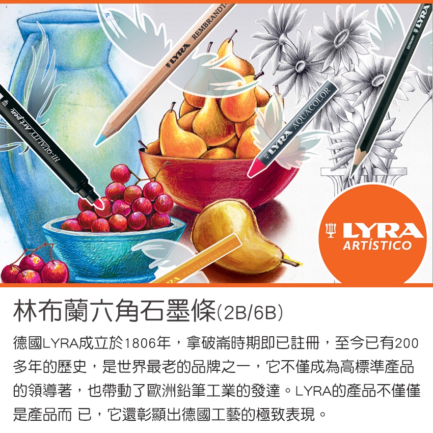 【德國LYRA】 林布蘭六角石墨條(2B/6B) 素描 寫生 外裹紙衣不意弄髒(LAVIDA官方直營)