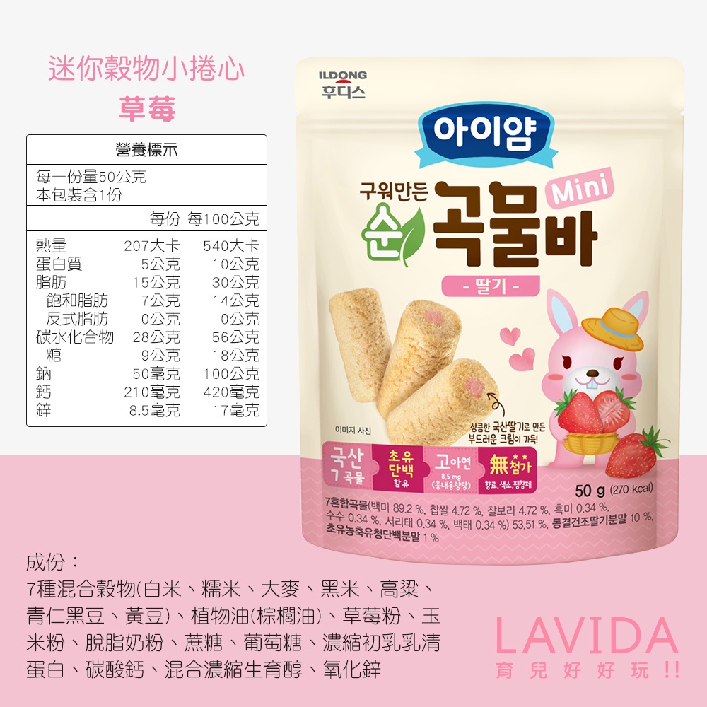 【韓國ILDONG日東】迷你穀物小捲心(50g/包) 穀物棒 夾心餅乾 米棒 手指餅乾 日東小捲心 寶寶餅乾