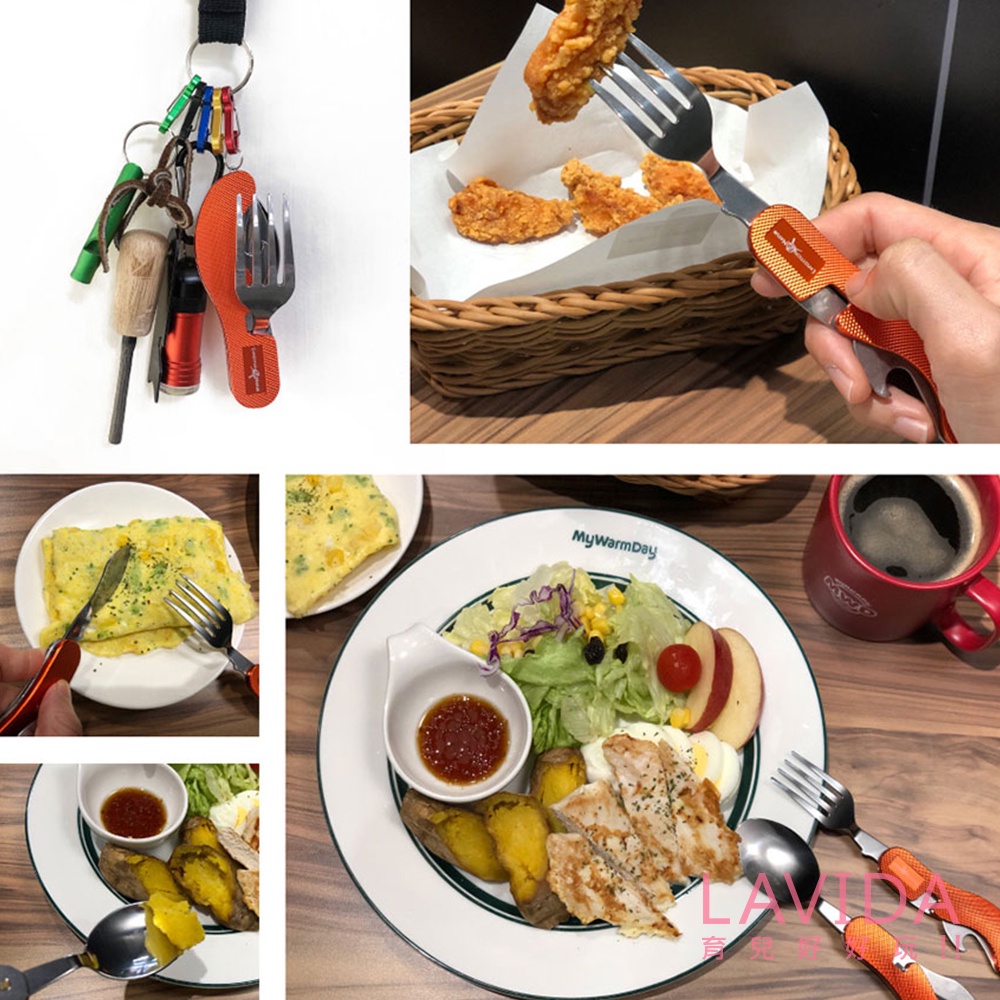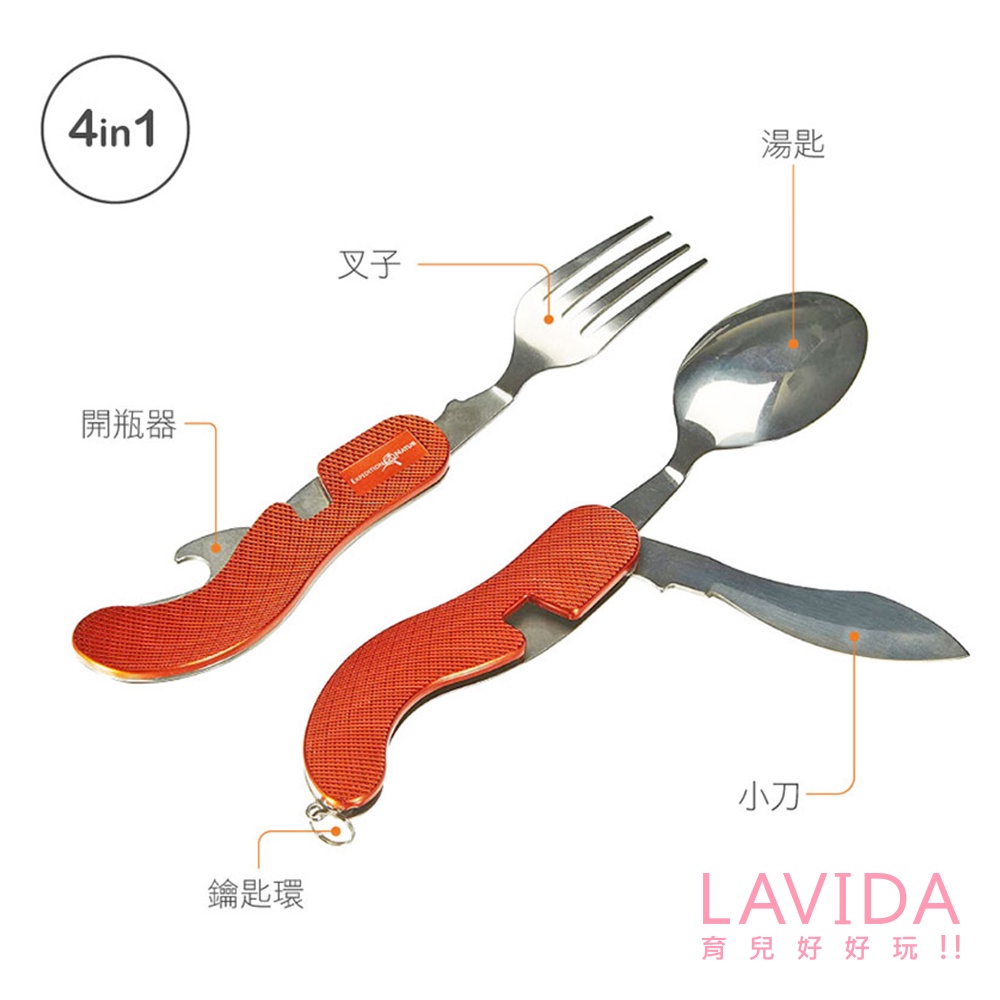 【德國Moses】小探險家系列-野炊餐具組 戶外露營餐具 不鏽鋼折疊餐具 四合一折疊餐具(LAVIDA官方直營)