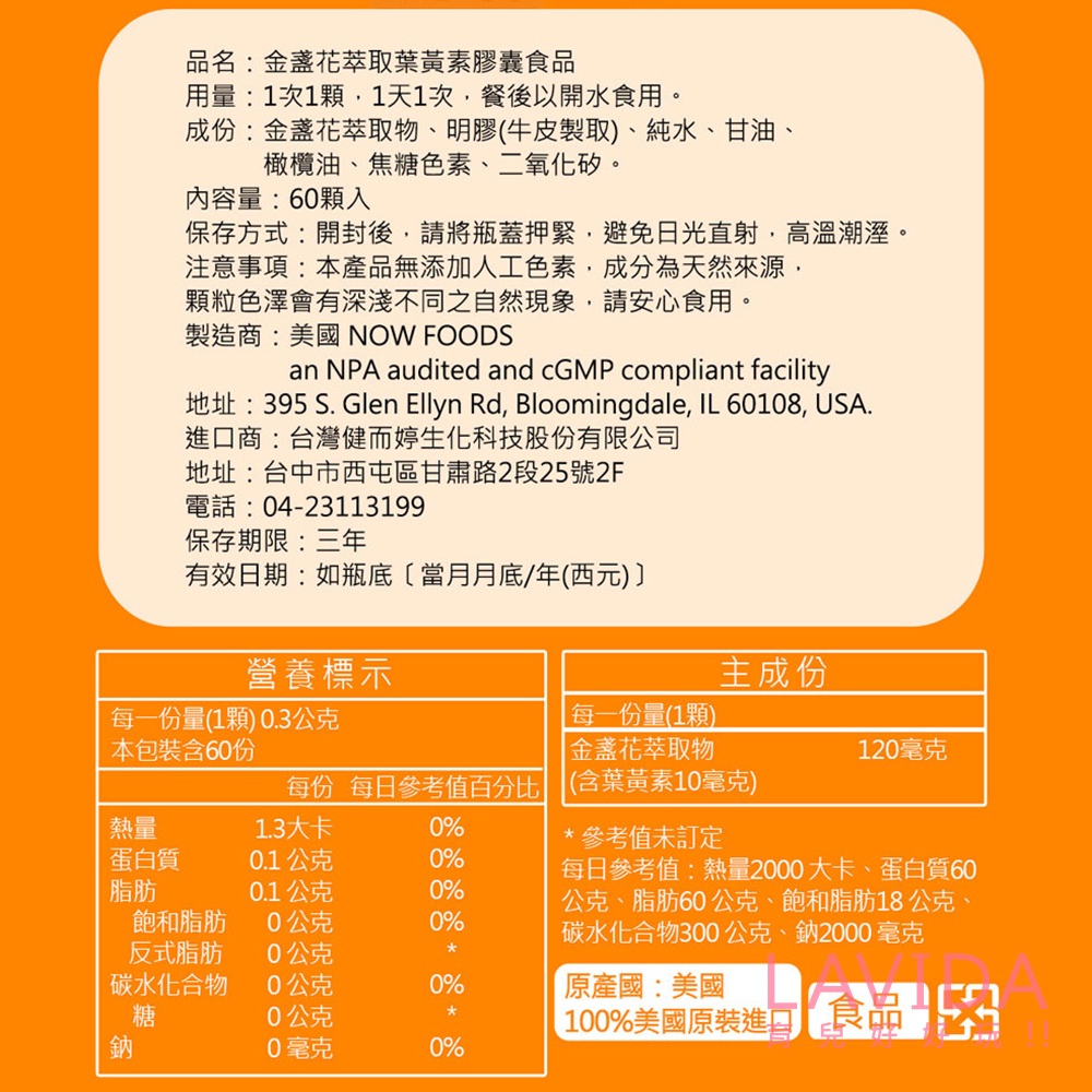 【美國NOW健而婷】金盞花萃取葉黃素膠囊食品(60顆/瓶) 健而婷葉黃素 now葉黃素