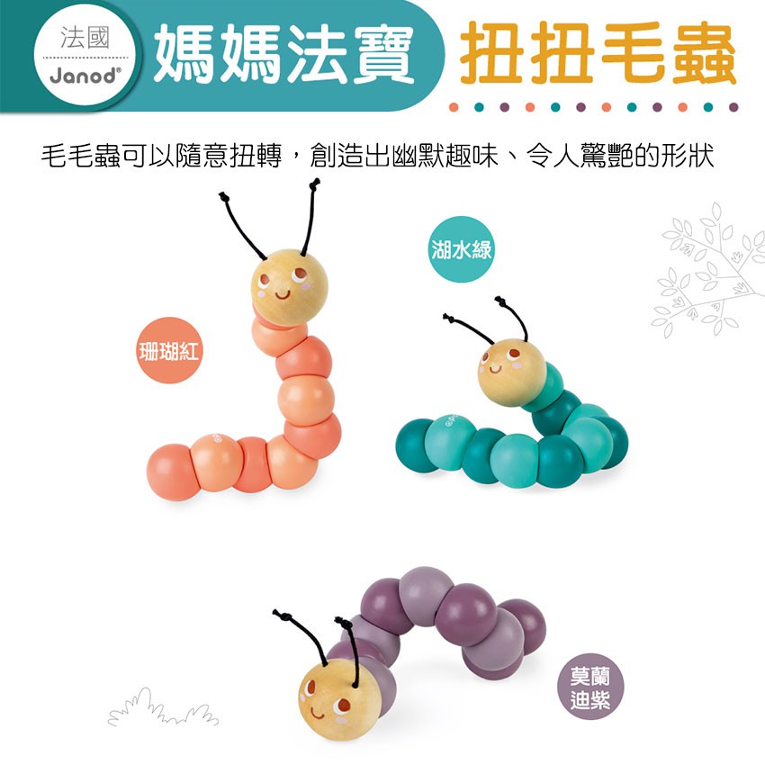 【法國Janod】媽媽法寶-扭扭毛蟲 益智玩具 兒童玩具 木製玩具 早教(LAVIDA官方直營)
