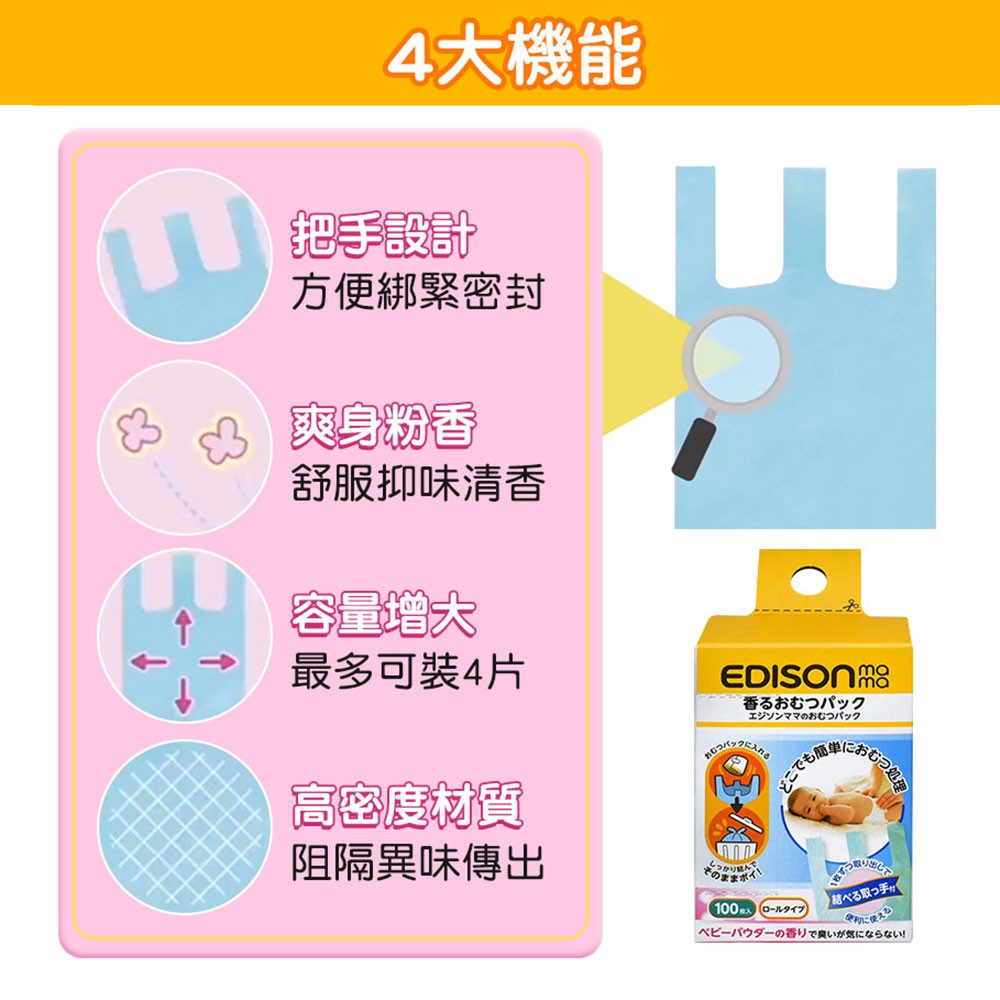 【日本Edison】KJC防臭微香尿布處理袋(100枚入) 尿布垃圾袋 尿布除臭 尿布袋(LAVIDA官方直營)