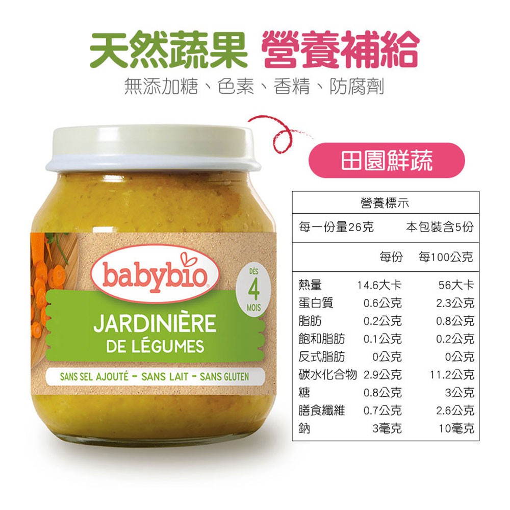 【法國Babybio貝優】生機蔬菜泥 玻璃罐系列(130g/瓶) 鮮蔬泥 蔬果泥 寶寶泥 法國果泥 嬰幼兒副食品 現貨