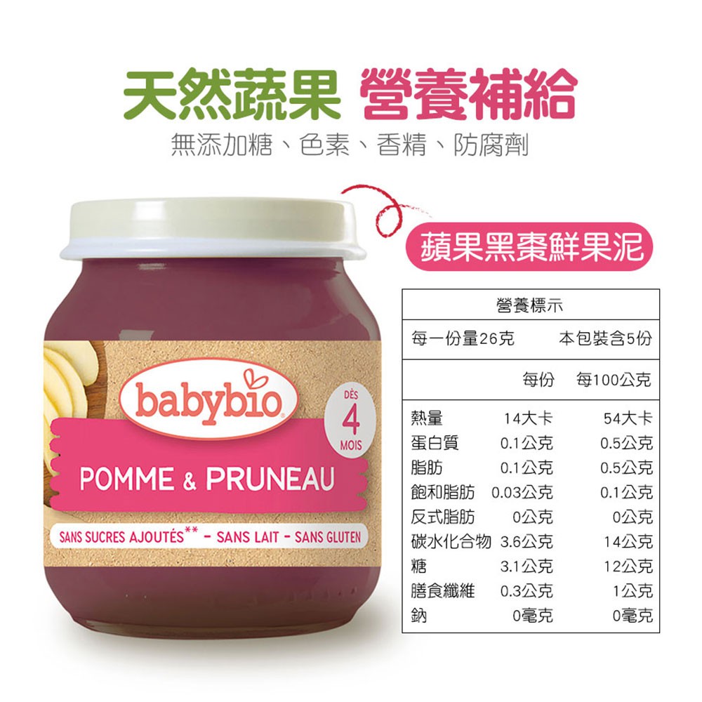 【法國Babybio】生機鮮果泥罐裝4M+(130g/罐)(多口味可選)