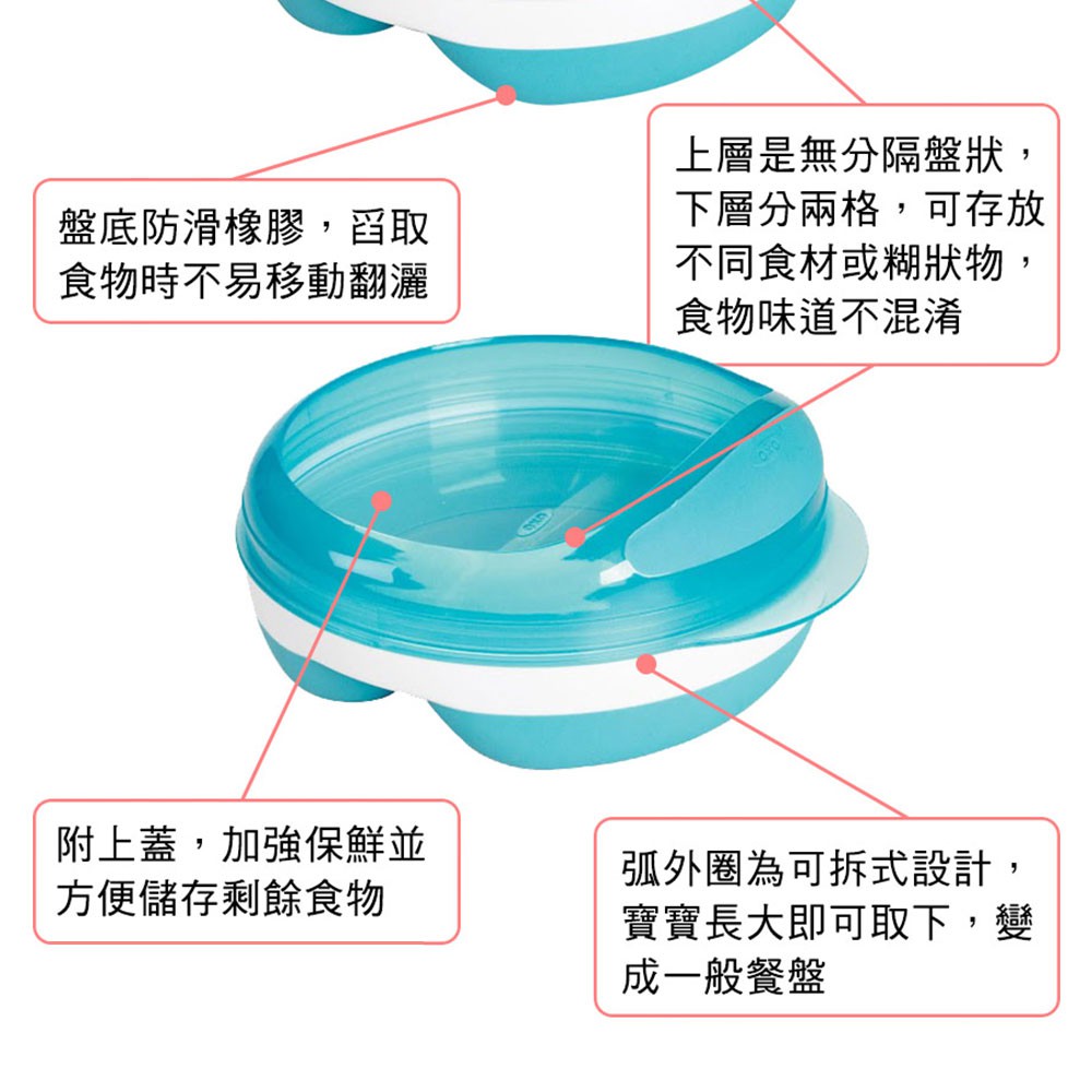 【美國OXO】雙層餵食餐碗(水藍) 學習餐具 餵食餐具 分隔餐碗(LAVIDA官方直營)