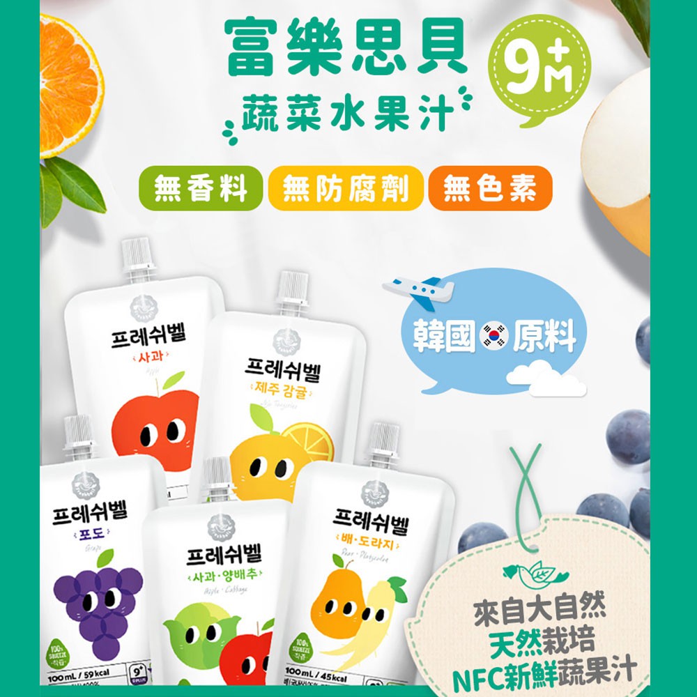 【韓國Freshbell富樂思貝】寶寶果汁(100ml/袋) 副食品 蔬果汁(LAVIDA官方直營)