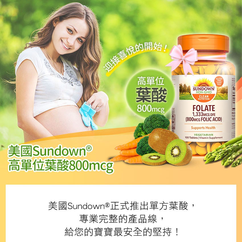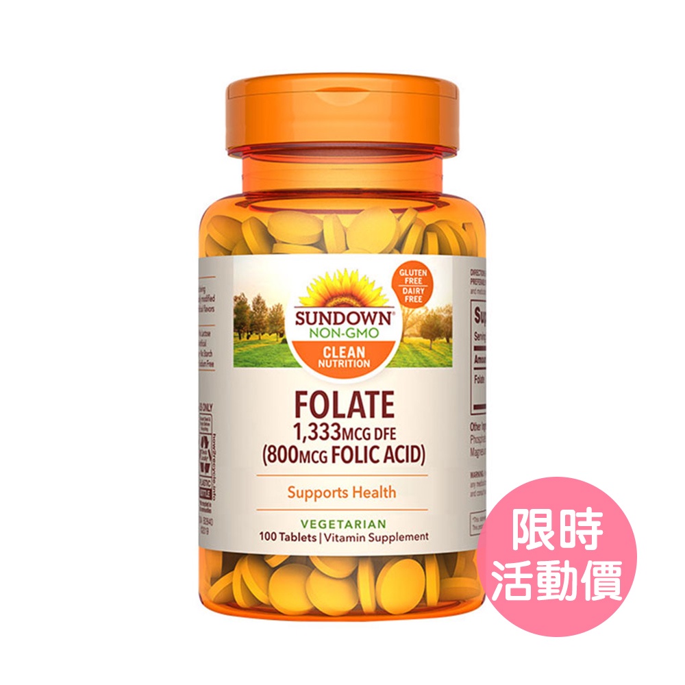 【美國Sundown日落恩賜】高單位葉酸(100粒/瓶) 懷孕保健品 孕婦保健品 保健品(LAVIDA官方直營)