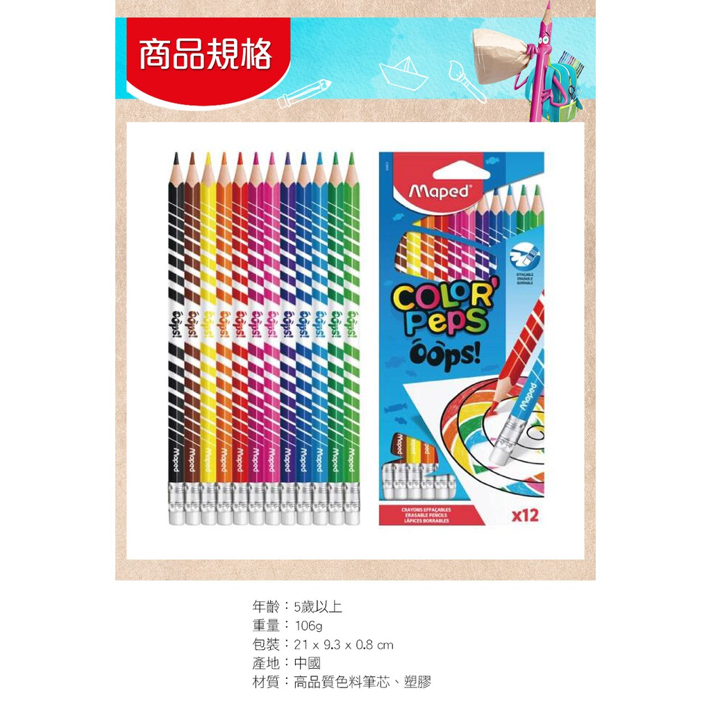 【法國Maped】可擦除彩色鉛筆12色 畫筆 繪畫工具 (LAVIDA官方直營)