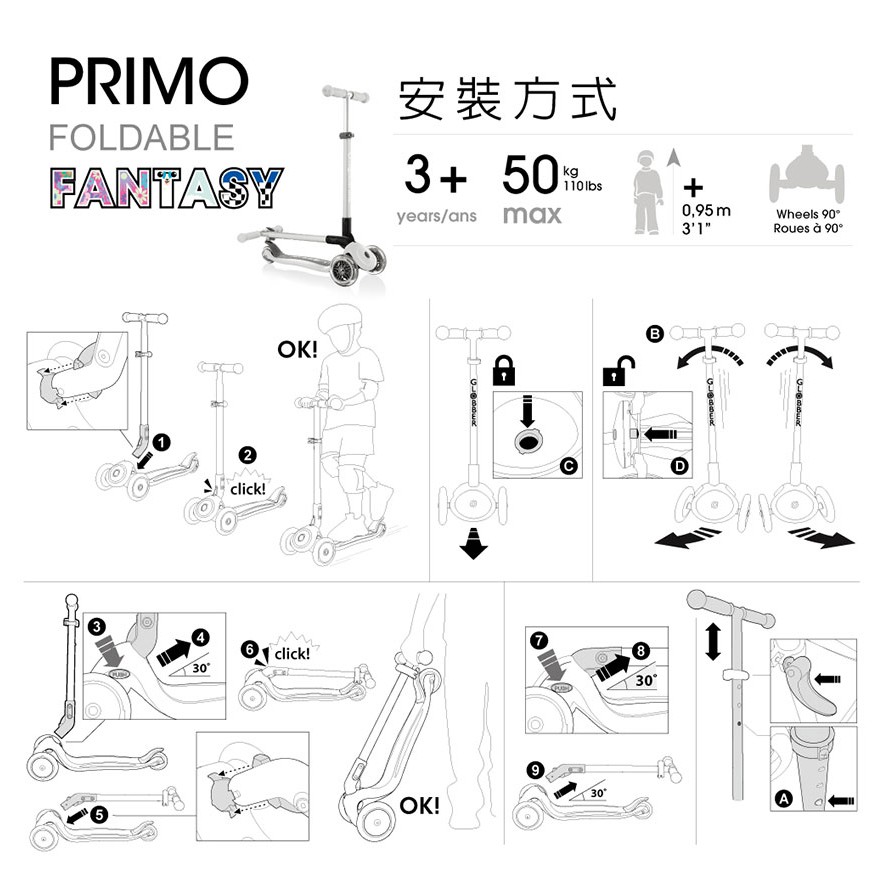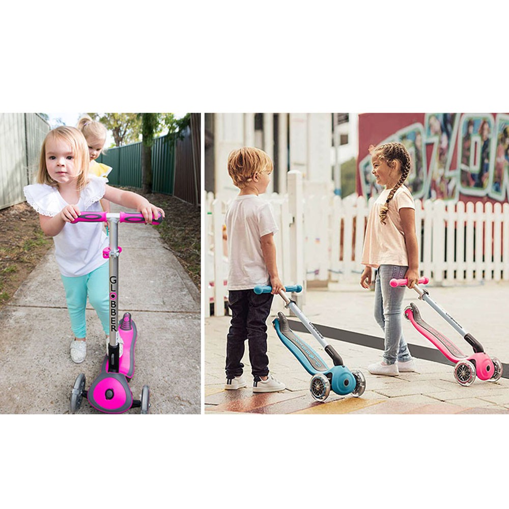 【法國GLOBBER】兒童2合1三輪折疊滑板車夢幻版(LED發光前輪) 滑板車 滑步車 兒童滑板(LAVIDA官