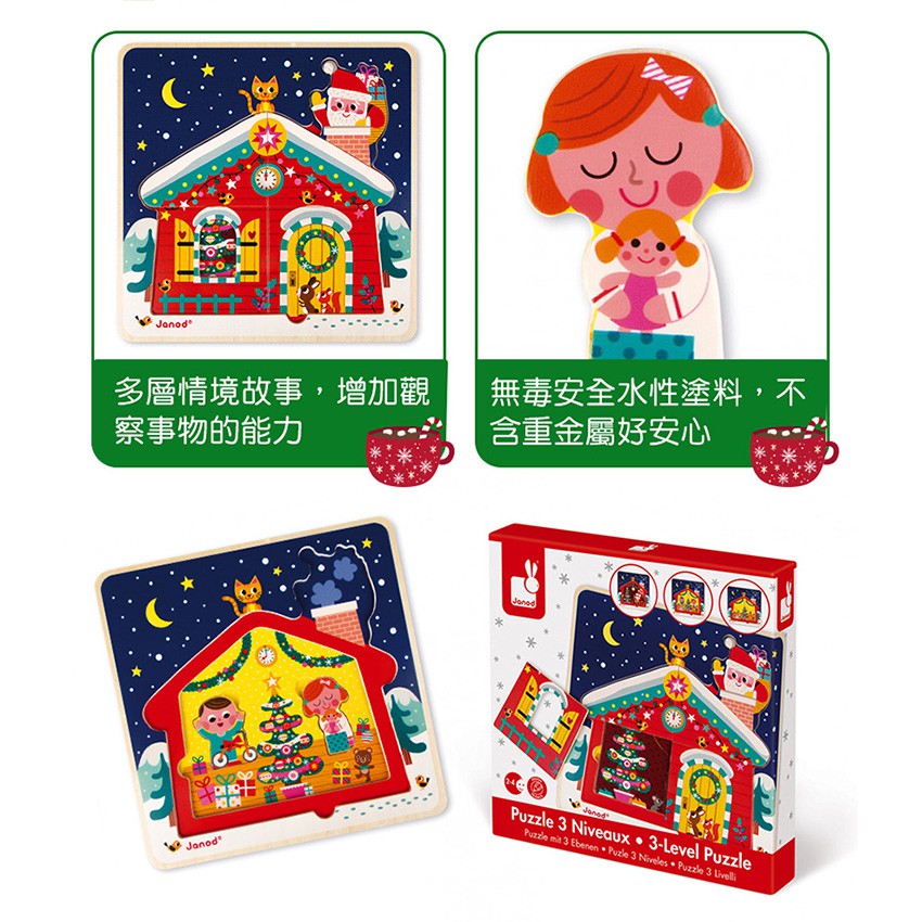 【法國Janod】層層拼-過聖誕 木頭拼圖 木質拼圖 幼兒玩具(多款可選)