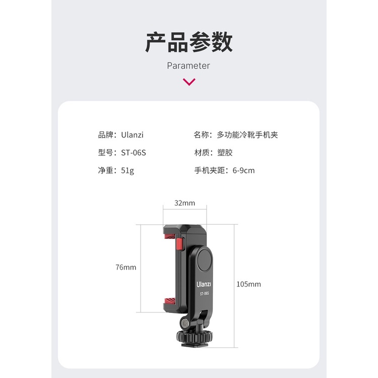 Ulanzi ST-06S 雙冷靴 橫豎拍手機夾 直播 vlog 橫堅拍 自拍 手機寬度6-9cm、厚1.2cm內