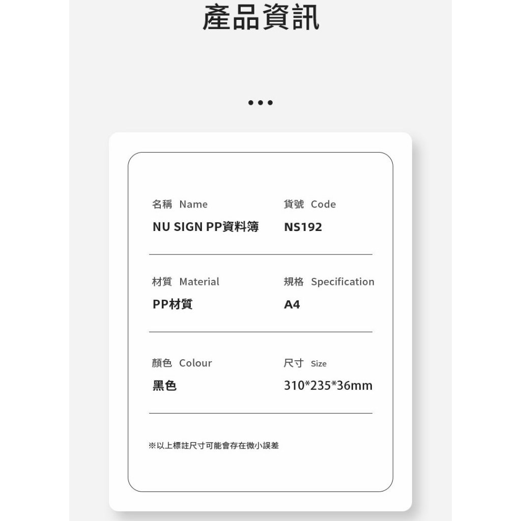 【Nusign紐賽】PP資料簿A4/60頁/黑色 墨海藍色 岸砂白 深灰色/NS192|得力旗艦店
