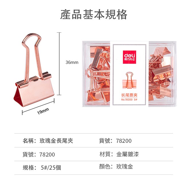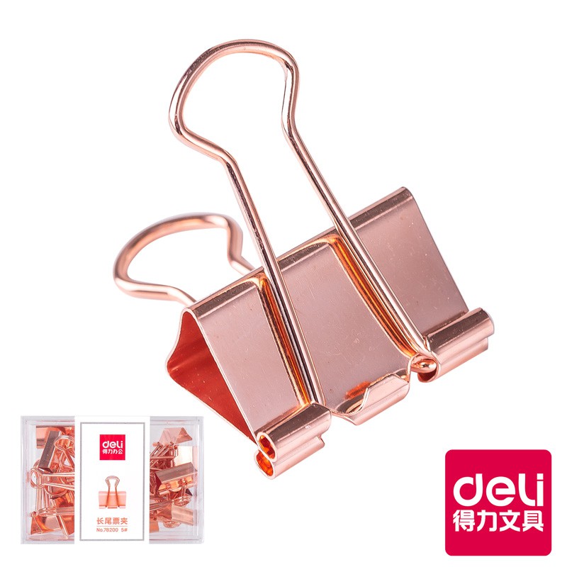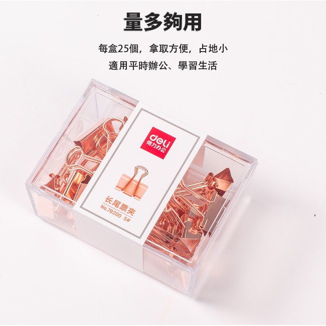 【Deli得力】玫瑰金長尾夾19mm/25支/盒裝/78200|得力旗艦店 台灣發貨