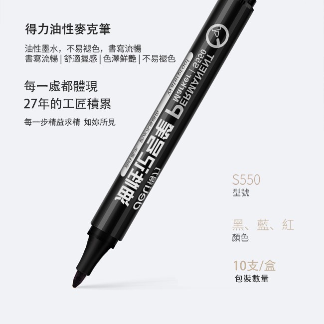 【Deli得力】油性麥克筆-紅1.5mm(S550) 台灣發貨|得力旗艦店