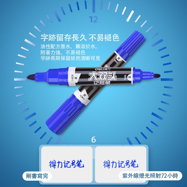 【Deli得力】 雙頭1-6mm油性筆-藍色(S555) 台灣發貨|得力旗艦店