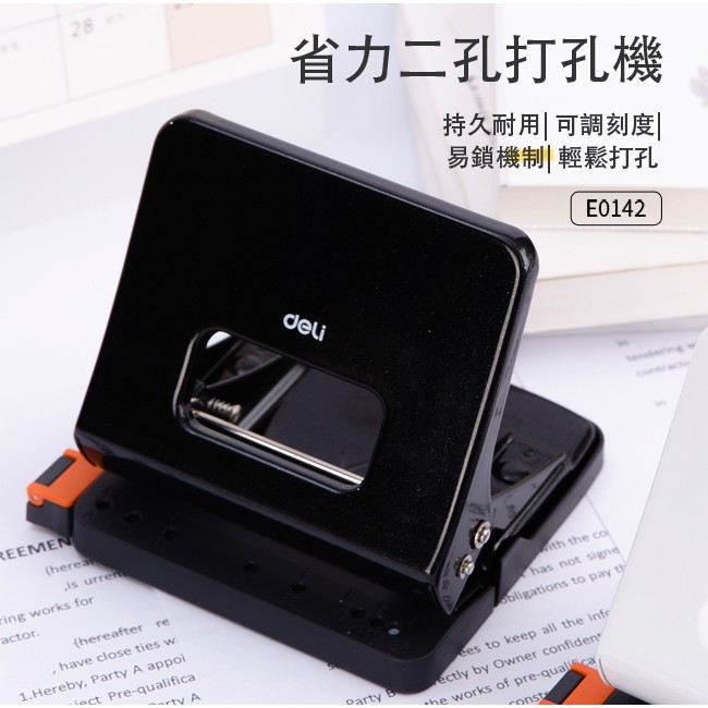 【Deli得力】省力二孔打孔機-黑-約25張(0142) 台灣發貨|得力旗艦店