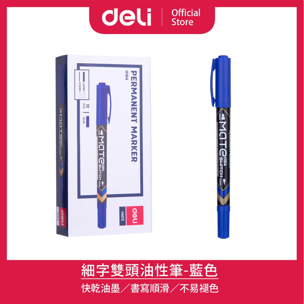 【Deli得力】 細字雙頭0.5-1.0mm油性筆-藍色(U10430) 台灣發貨|得力旗艦店