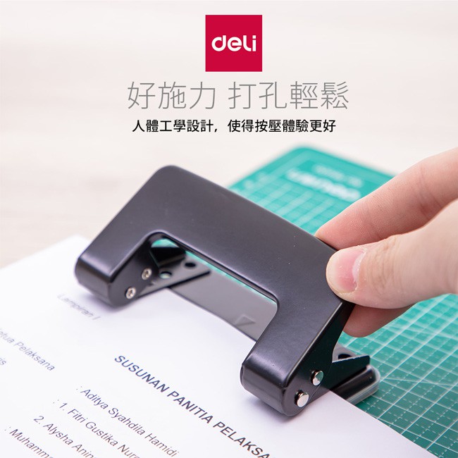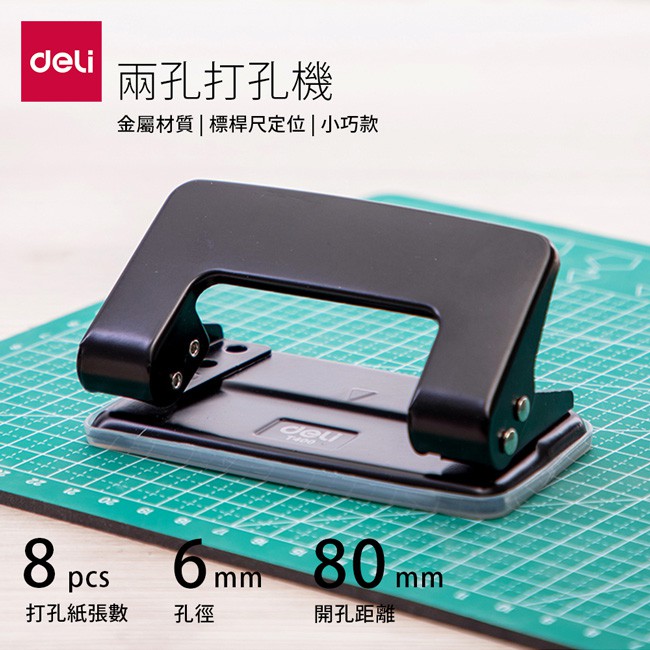 【Deli得力】 二孔打孔機-約8張-黑色(T40020) 台灣發貨|得力旗艦店