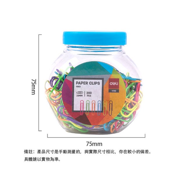 【Deli得力】 彩色迴紋針29mm-200支/筒(0053) 台灣發貨|得力旗艦店