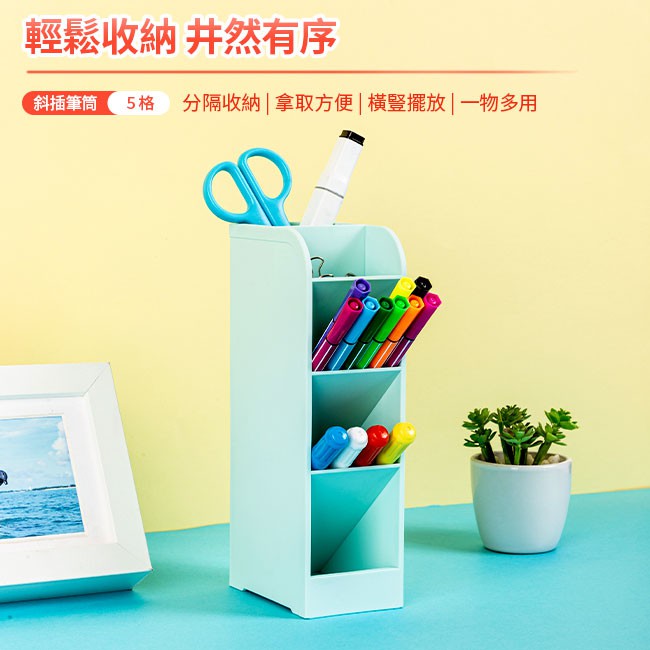 【Deli得力】5格斜插筆筒205x59x92.5mm(W8933) 台灣發貨 筆筒|得力旗艦店