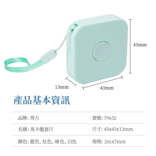 【Deli得力】馬卡龍捲尺 總長2M-混色出貨(79652) 台灣發貨 伸縮尺|得力旗艦店