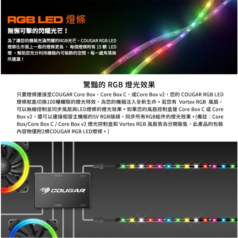 Cougar 美洲獅 RGB LED Strip 幻彩 ARGB燈條/長45公分/15顆LED燈/附帶磁鐵