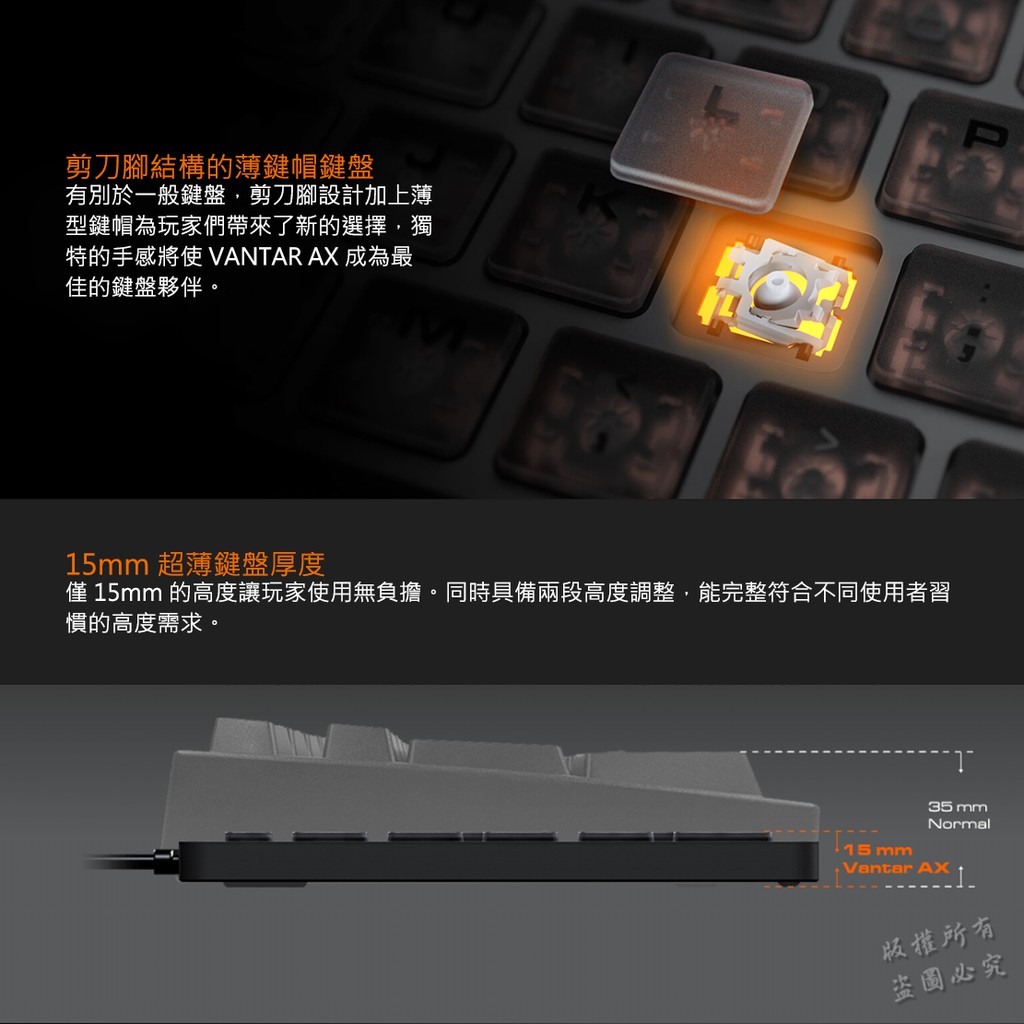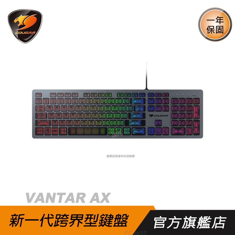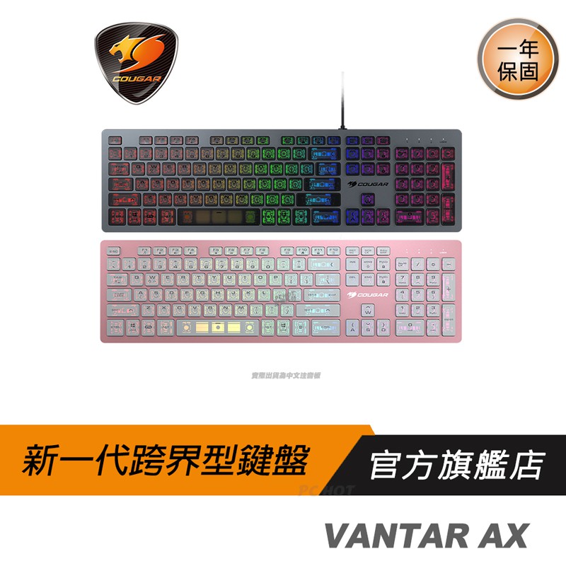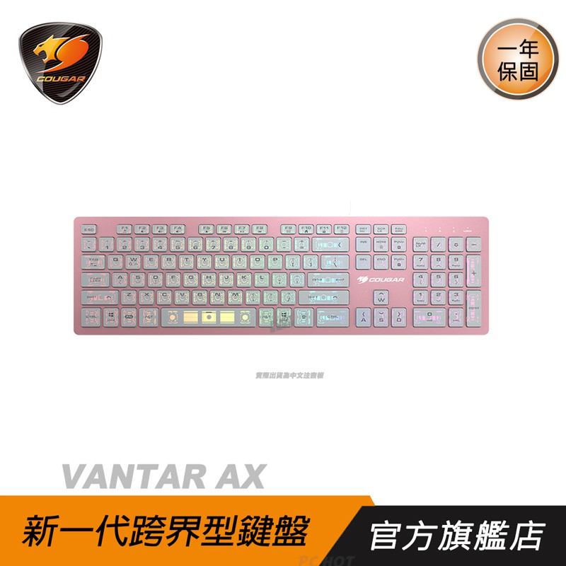 Cougar 美洲獅 VANTAR AX 剪刀腳鍵盤 超薄鍵盤 黑 粉/全鋁設計/全區半透明鍵帽/RGB/卓越的響應性能