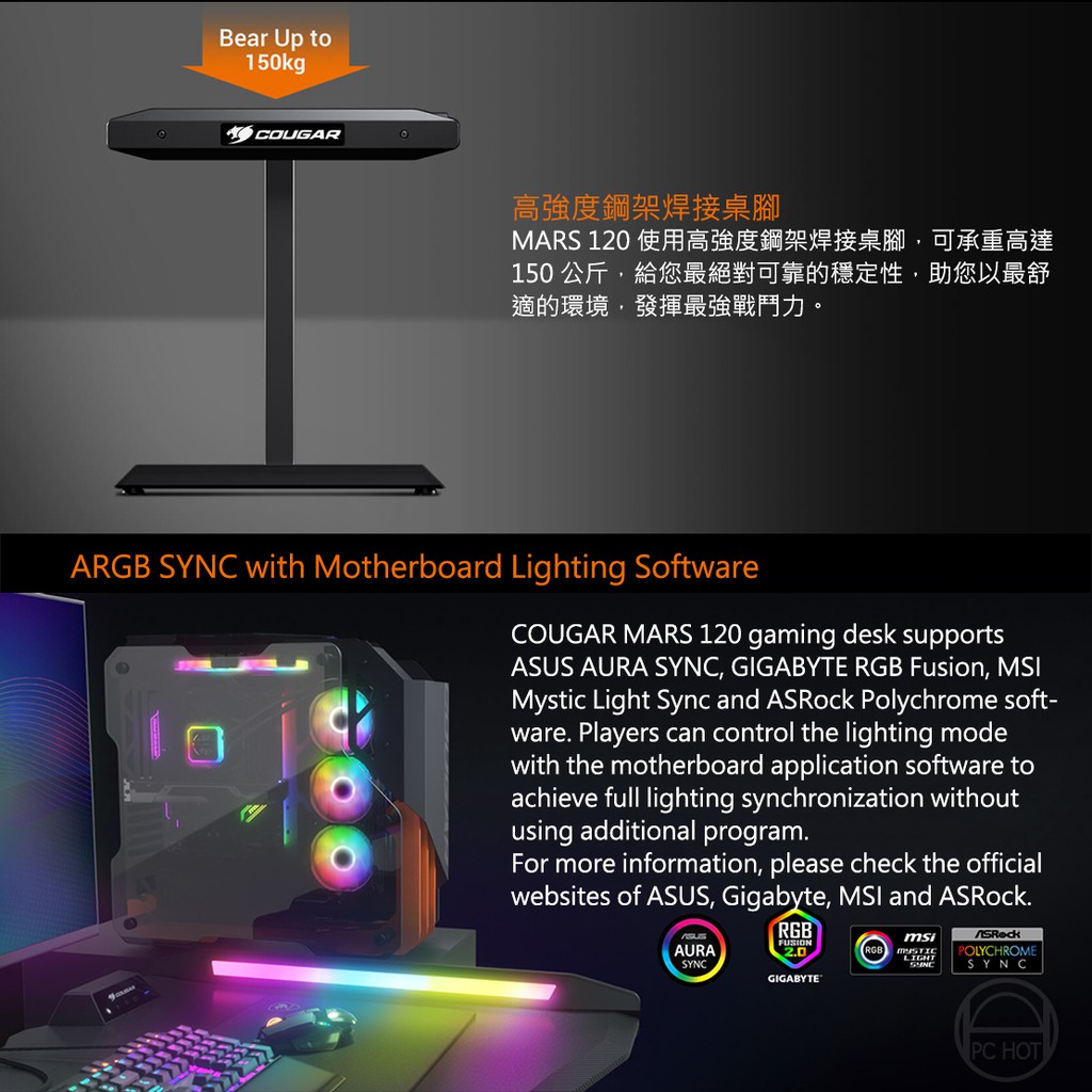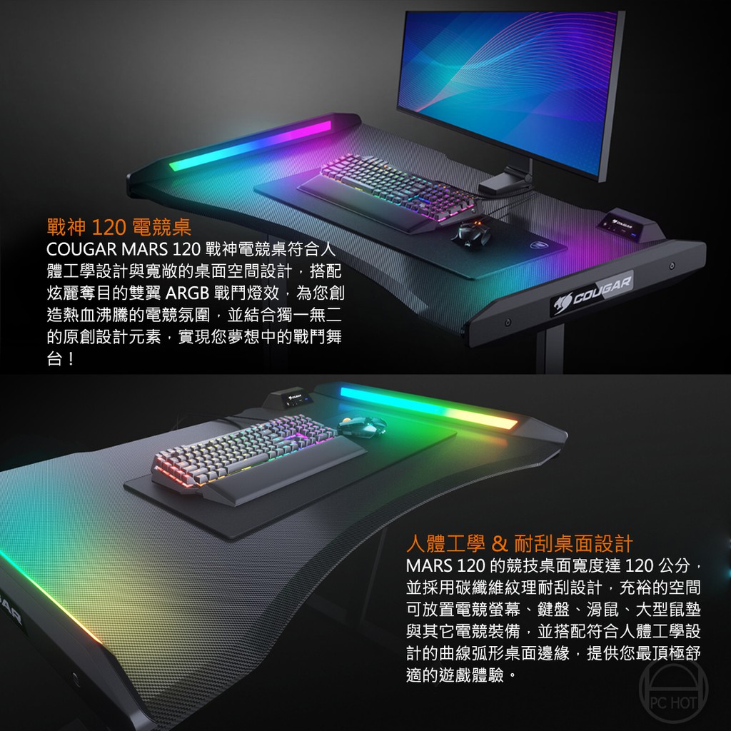 Cougar 美洲獅 MARS 120 電競桌 學習桌 雙側翼ARGB 耐刮桌面 多功能控制台 承重150kg
