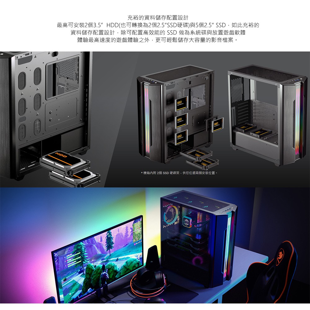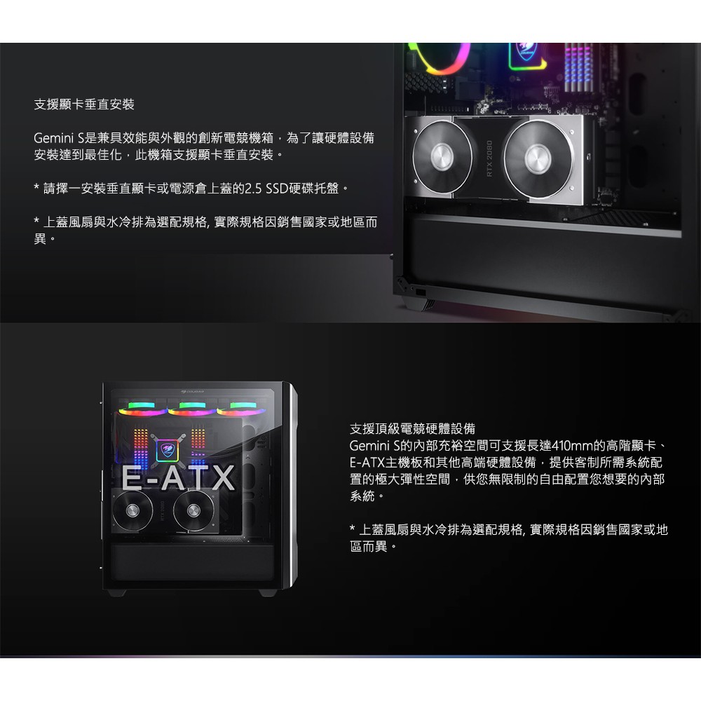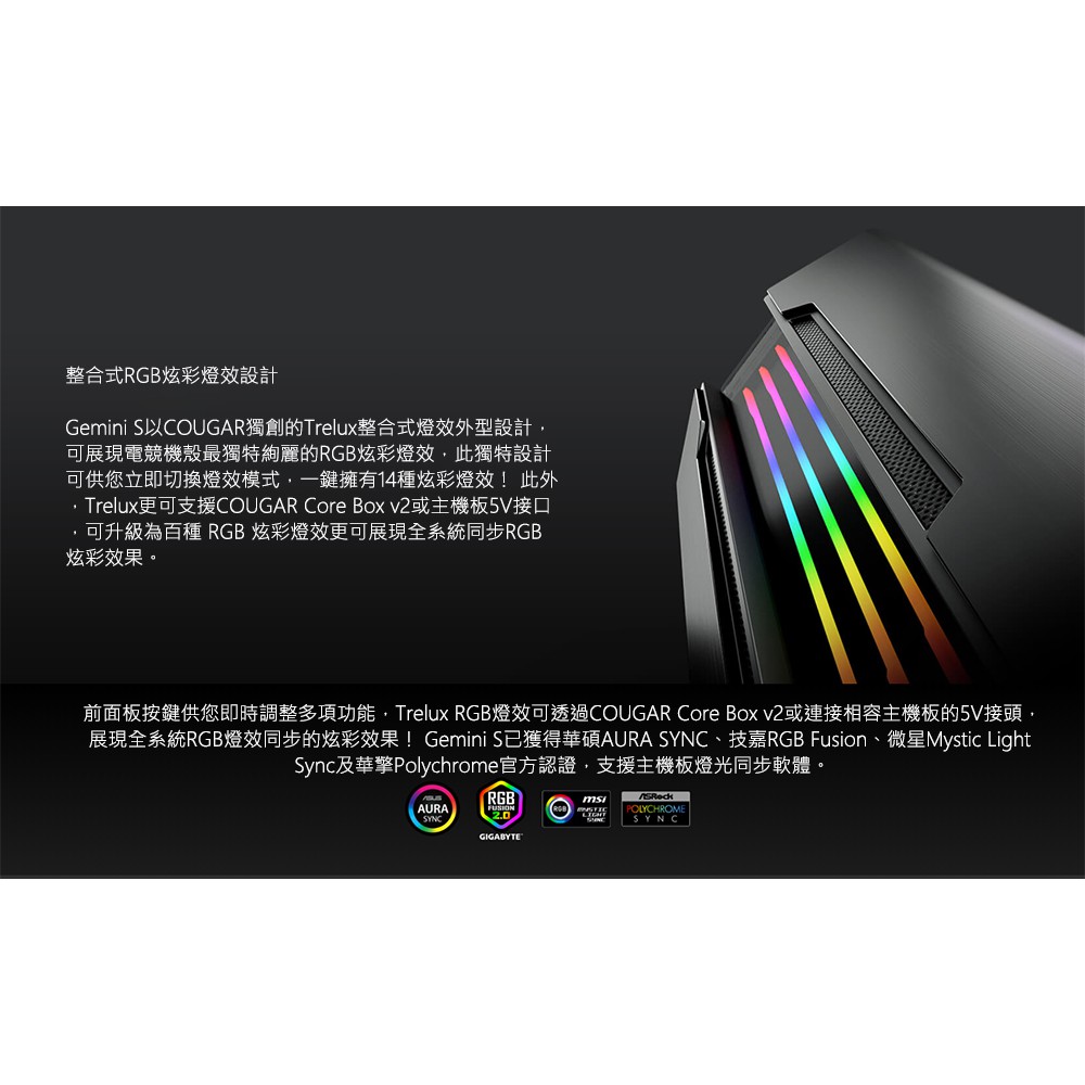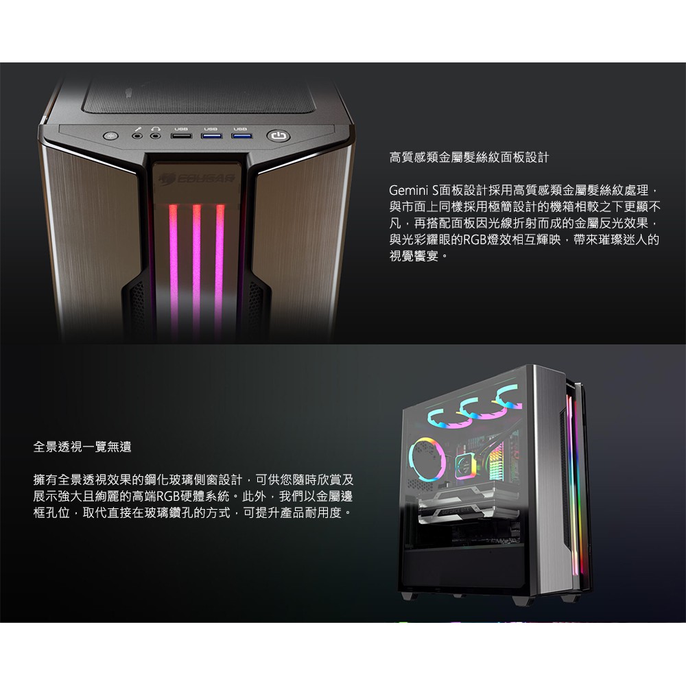 Cougar 美洲獅 Gemini S 2020 中塔機箱/整合式RGB/金屬髮絲紋面板/鋼化玻璃側窗/出眾的散熱