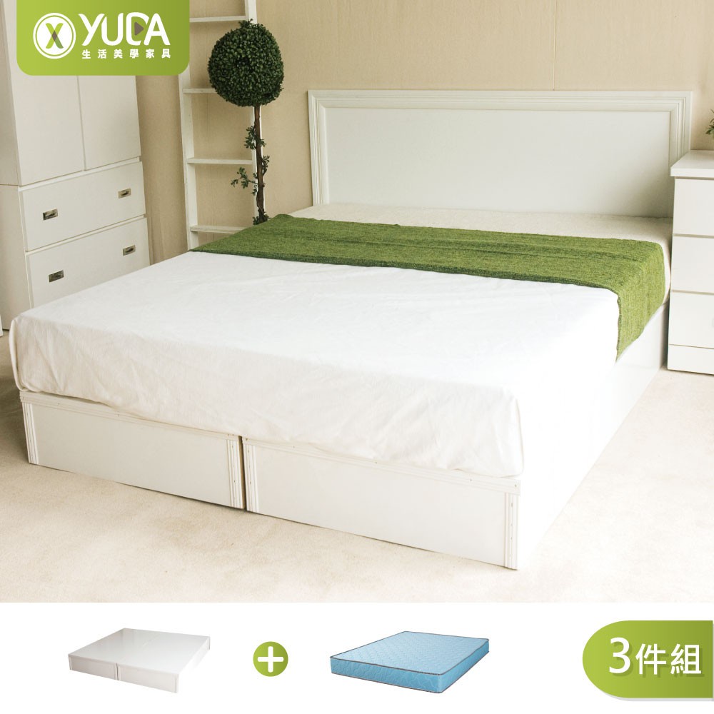 【YUDA】房間組三件組 3.5尺/5尺/6尺 床架組/床底組 純白色(床頭片+加厚六分床底+獨立筒床墊)(北部免運)