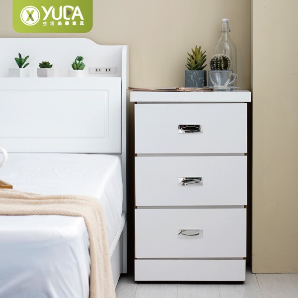【YUDA】三抽床頭櫃 1.3尺 純白色 (三抽櫃/收納床頭櫃/床邊櫃/床頭箱) 新竹以北免運