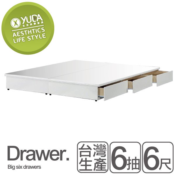 【YUDA】抽屜床底 6尺 雙人加大 收納床底/床底/床架純白色 (木心板製全六分全封底) 堅固耐用 純白色