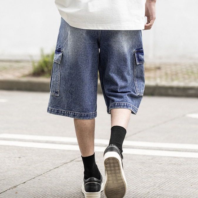 PUNX JEANS 工裝拼接 水洗單寧大口袋 牛仔短褲 七分褲【 PUNX 】