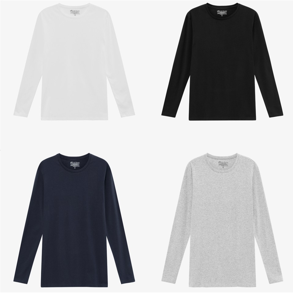 Bread & Boxers Crew-Neck 有機棉男用長袖圓領T (白/黑/灰/深藍) 長袖 素面