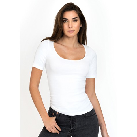 Bread & Boxers 女用有機棉羅紋大圓領T(白/黑/卡其/綠) 有機棉 舒適 U領 顯瘦 曲線 苗條