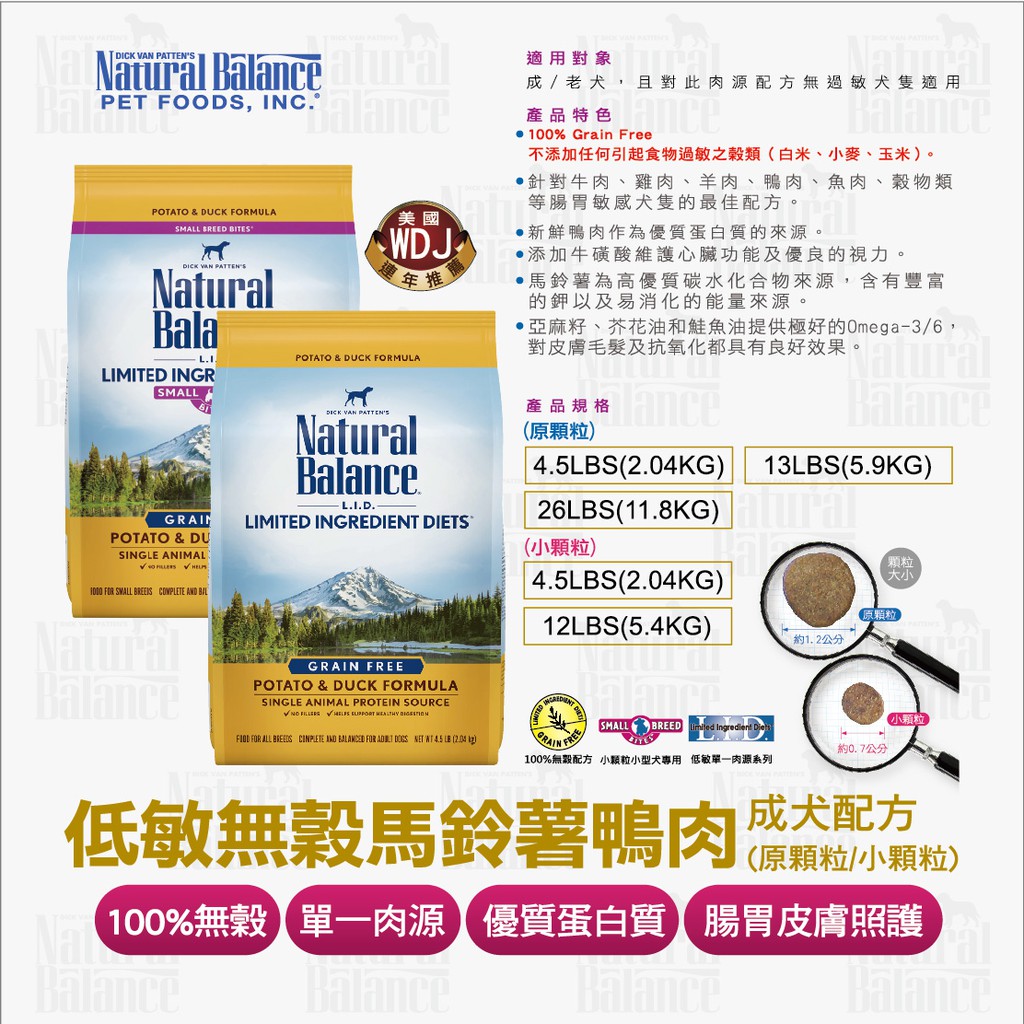 Natural Balance 低敏無穀馬鈴薯鴨肉成犬配方 2.04kg(4.5磅)