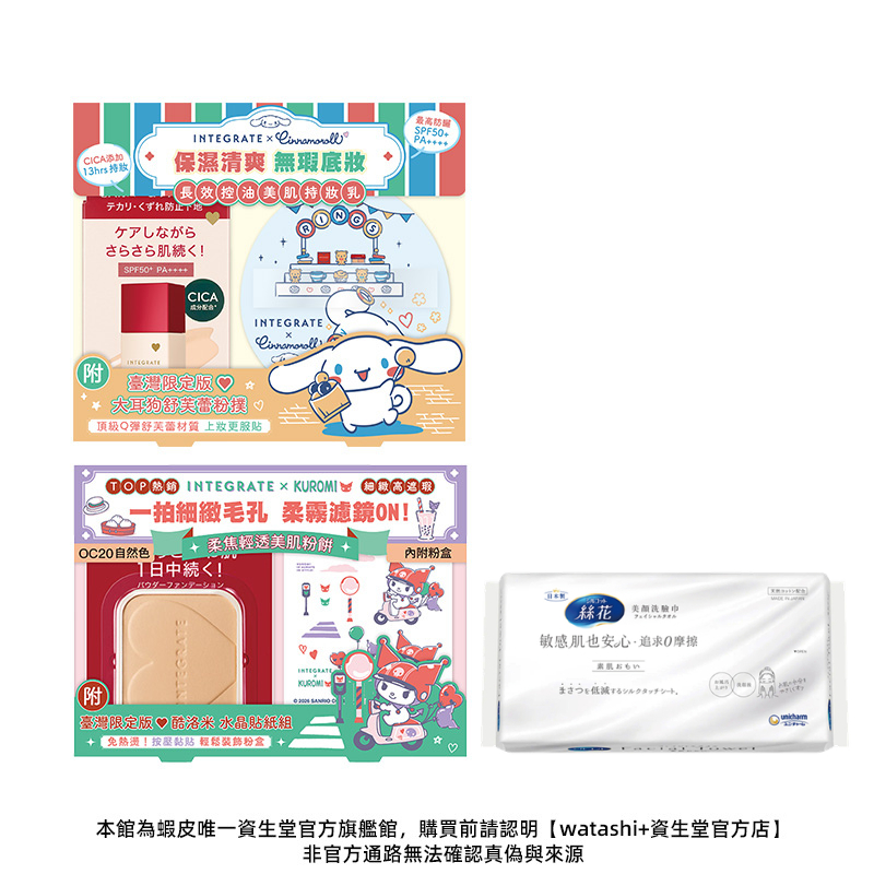 INTEGRATE 柔焦粉餅&持妝乳三麗鷗聯名組【watashi+資生堂官方店】粉餅 持妝乳