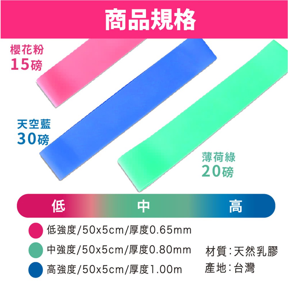 muva繽紛迷你彈力帶組3入 輔助力量訓練 天然乳膠 SA6911