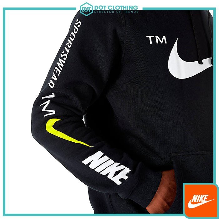 NIKE TM HOODIE 黑 橘 螢光黃大勾 帽T OFF WHITE風 BV3063-010 零碼出清 DOT聚點